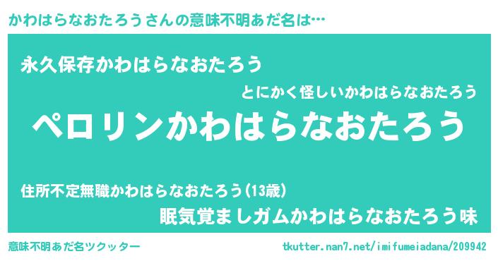 | 可愛いあだ名 | 『かんかん』『かわはらなおたろうママ』 |