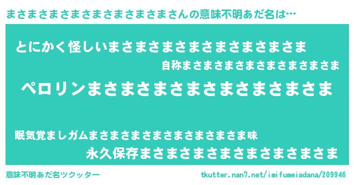 | 男性向けラノベタイトル風あだ名 | 『うちのまさまさまさまさまさまさまさまが世界を掌握している!』 |