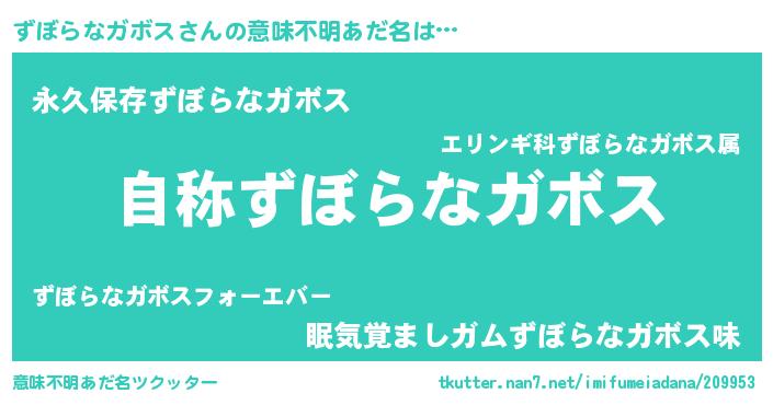 | 欧米人風あだ名 | 『ケンブリッジずぼらなガボス』 |