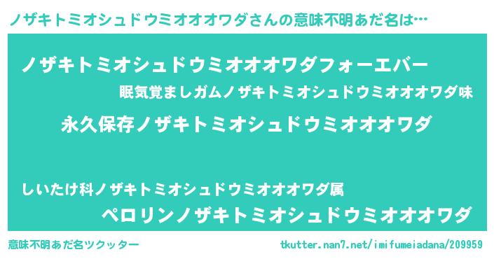 | 可愛いあだ名 | 『ノザキトミオシュドウミオオオワダママ』 |