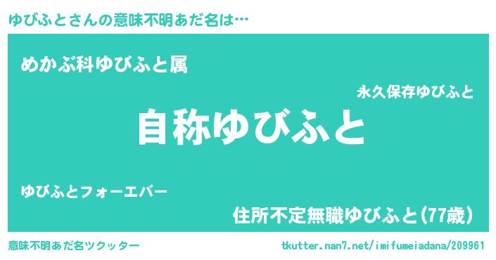 | 男性向けラノベタイトル風あだ名 | 『Re:ゆびふとから始める異世界生活』 |