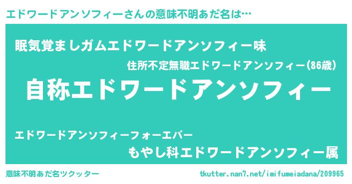 | 男性向けラノベタイトル風あだ名 | 『Re:エドワードアンソフィーから始める異世界生活』 |
