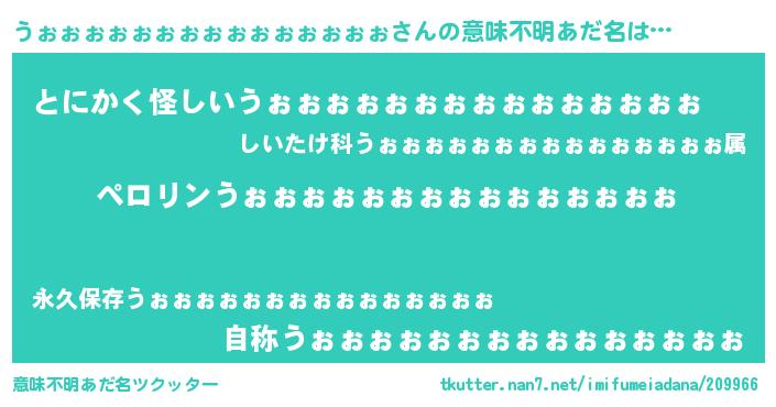 | 男性向けラノベタイトル風あだ名 | 『うぉぉぉぉぉぉぉぉぉぉぉぉぉぉぉの憂鬱』 |
