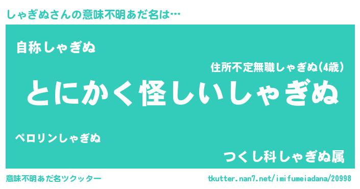 | 肩書あだ名 | 『しゃぎぬ塾長』『しゃぎぬ総統』 |