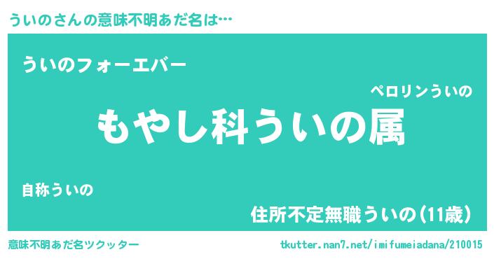 | 男性向けラノベタイトル風あだ名 | 『転生したらういのだった件』 |