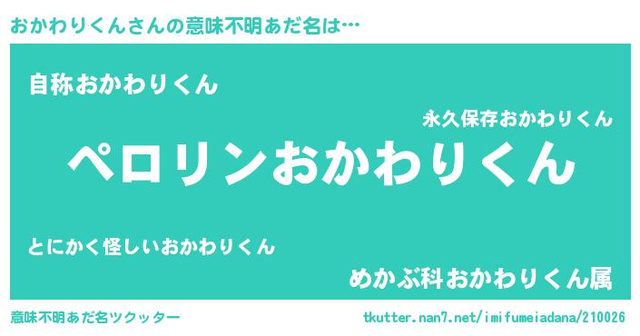 | ヒーロー風カッコイイあだ名 | 『スーパーオカワリクン』『幻影騎士オカ』 |