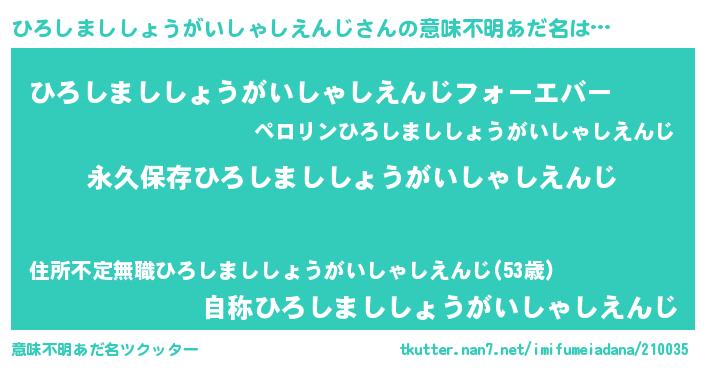 | 可愛いあだ名 | 『ひろしまししょうがいしゃしえんじママ』 |