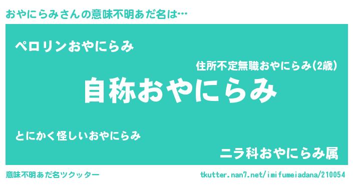 | ヘコむあだ名 | 『おやにー』『おやっ子』『なまこ酢』 |