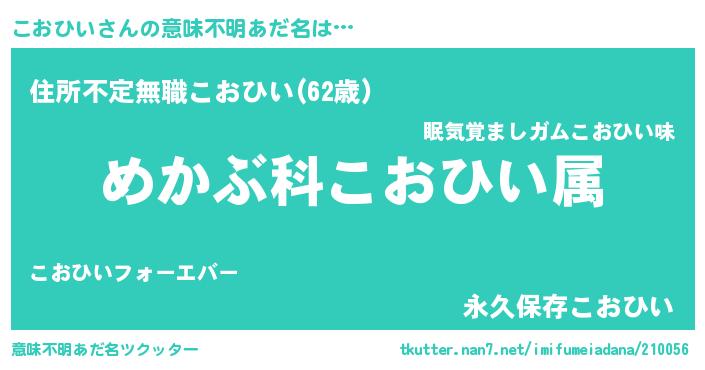 | ヘコむあだ名 | 『こおひい(小並感)』『なまこ酢』 |