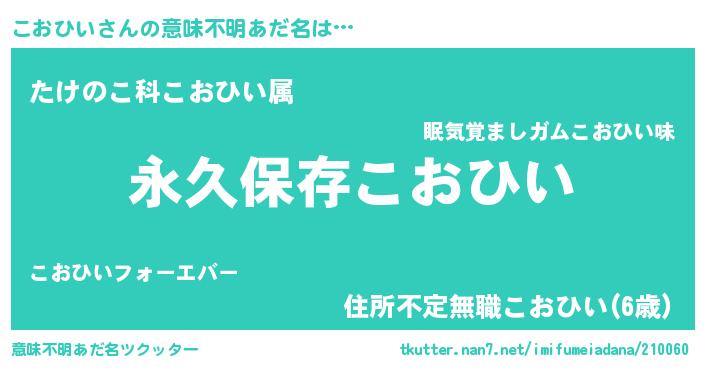 | 胡散臭い通販商品みたいなあだ名 | 『絶対に幸福をもたらす水素水…その名も「こおひい」』 |