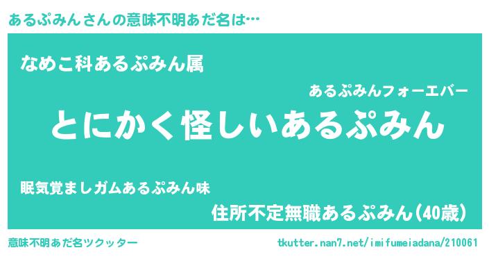 | 料理風あだ名 | 『あるぷみんの豆乳スープ』 |