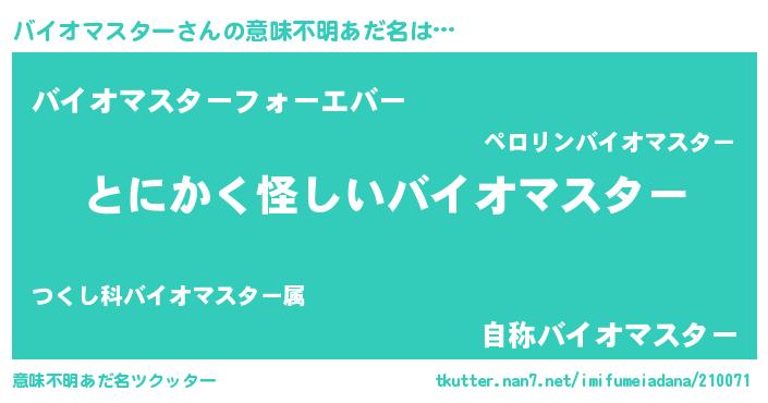 | 胡散臭い通販商品みたいなあだ名 | 『伝統あるサプリメント…その名も「バイオマスター」』 |