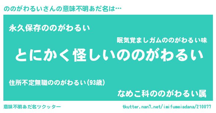 | 胡散臭い通販商品みたいなあだ名 | 『信頼と実績のペンダント…その名も「ののがわるい」』 |