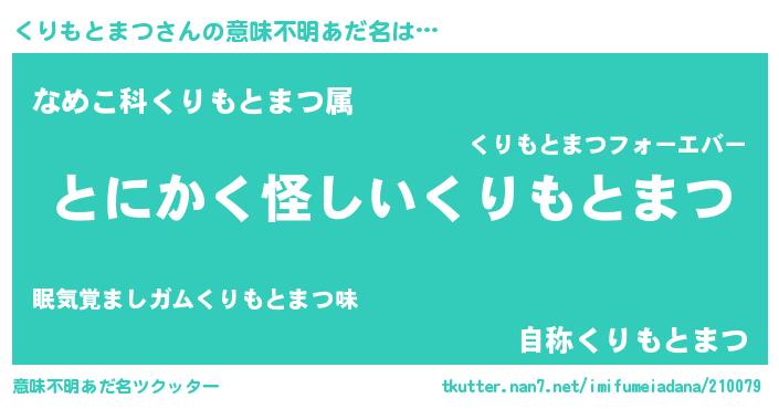 | 男性向けラノベタイトル風あだ名 | 『ダンジョンにくりもとまつを求めるのは間違っているだろうか』 |