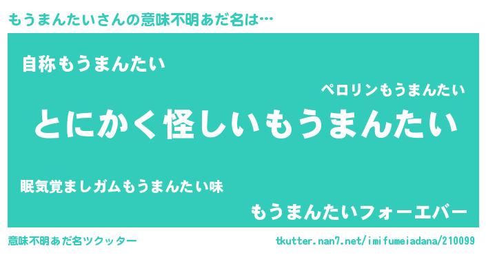 | ポケモン風あだ名 | 『モウゴンZ』『ヒモウマンタイ』 |