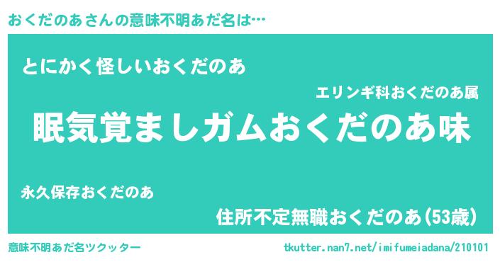 | 女子向けラノベタイトル風あだ名 | 『おくだのあ恋絵巻』 |