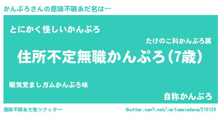 | 胡散臭い通販商品みたいなあだ名 | 『あなたにだけ特別に提供する100年もののヴィンテージワイン…その名も「かんぷろ」』 |