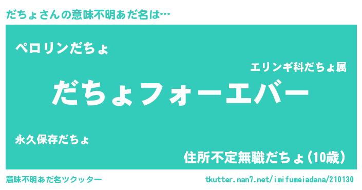 | 女子向けラノベタイトル風あだ名 | 『だちょの雑貨屋さん』 |