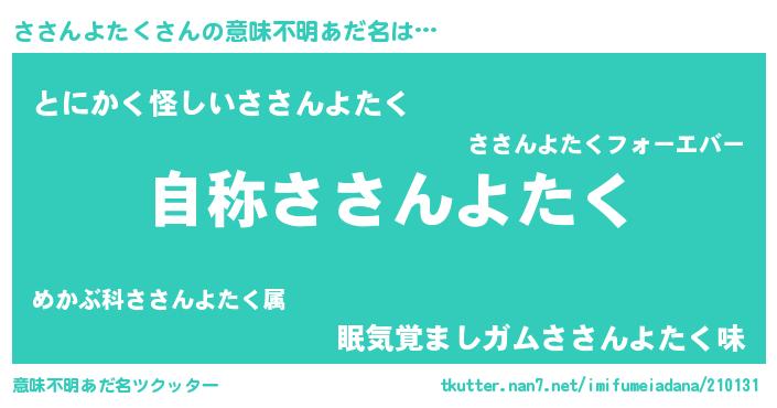 | 欧米人風あだ名 | 『ケンブリッジささんよたく』 |