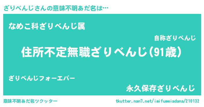 | 料理風あだ名 | 『ざりべんじのカルパッチョ風』 |