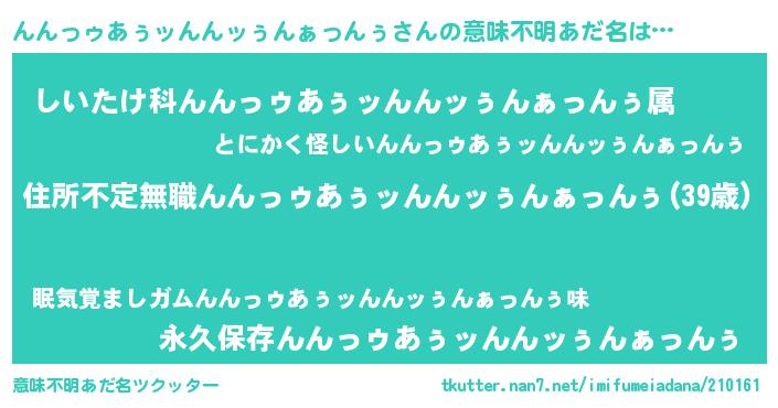 | ヘコむあだ名 | 『んんっゥあぅッんんッぅんぁっんぅ(笑)』 |