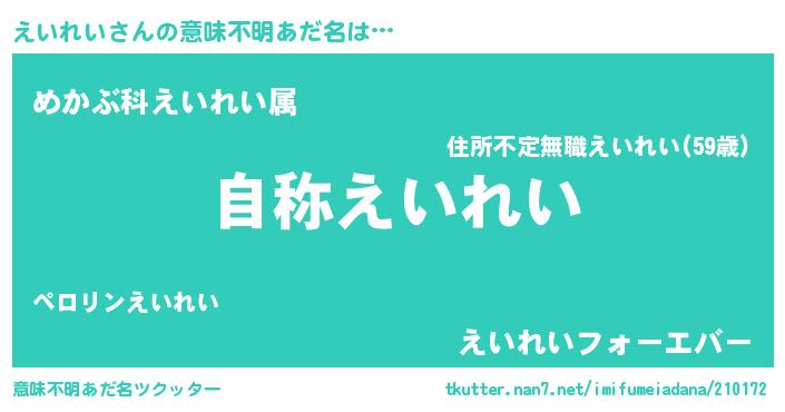 | ヘコむあだ名 | 『豆乳』『えいもー』『えいれい(笑)』 |