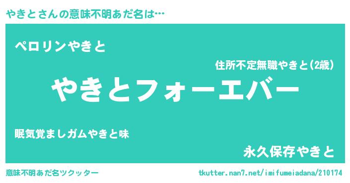 | 女子向けラノベタイトル風あだ名 | 『やきとの雑貨屋さん』 |