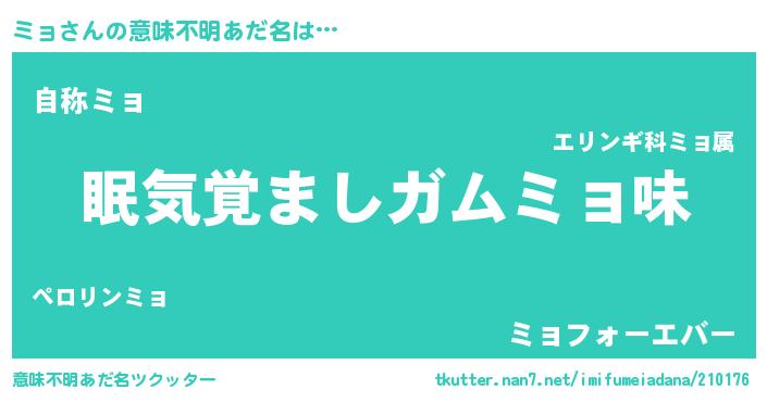 | ヒーロー風カッコイイあだ名 | 『慈愛の使者ミョ』『究極戦士ミョ』 |