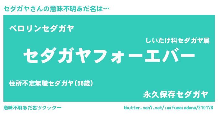 | 欧米人風あだ名 | 『セダガヤクリステル』 |