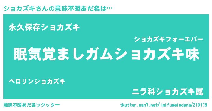 | ヘコむあだ名 | 『ショカズキ(震え声)』『牛乳』 |