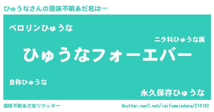 | ヒーロー風カッコイイあだ名 | 『ウルトラひゅうなマン』『ネオヒュウナ』 |