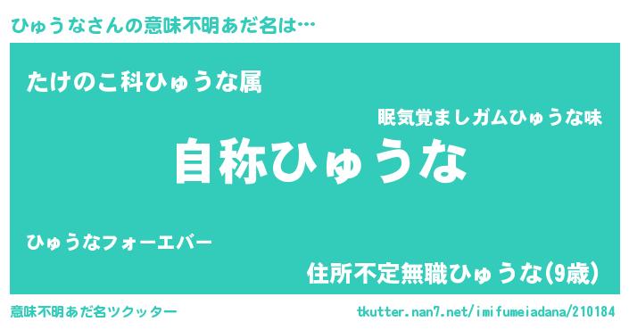 | 男性向けラノベタイトル風あだ名 | 『ひゅうなに滅ぼされるだけの簡単なお仕事です』 |