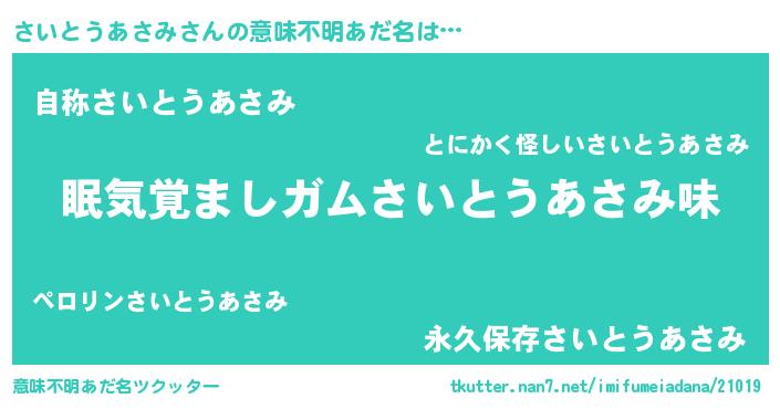| 胡散臭い通販商品みたいなあだ名 | 『モンドセレクションを受賞した隕石のかけら…その名も「さいとうあさみ」』 |