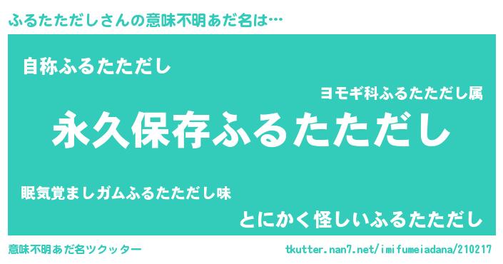 | 胡散臭い通販商品みたいなあだ名 | 『来世でも幸せになれる健康食品…その名も「ふるたただし」』 |