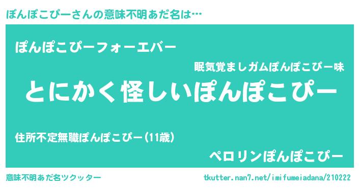 | ポケモン風あだ名 | 『ヒポンポコピー』『メロポッン』 |