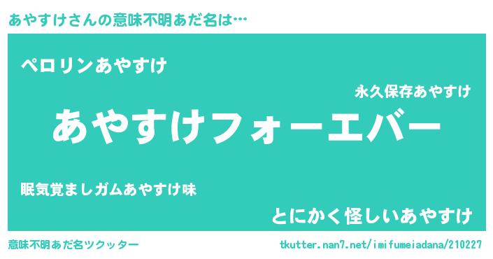 | 欧米人風あだ名 | 『あやすけ・ステッグマイヤー』 |