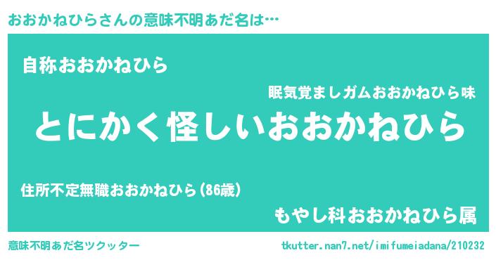| ヘコむあだ名 | 『おおっぺ』『おおかねひら(爆)』 |