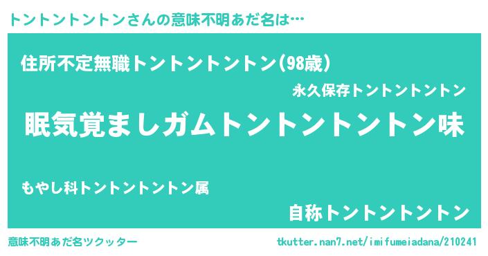 | ヘコむあだ名 | 『トントントントン(遠い目)』『トンぷりん』 |