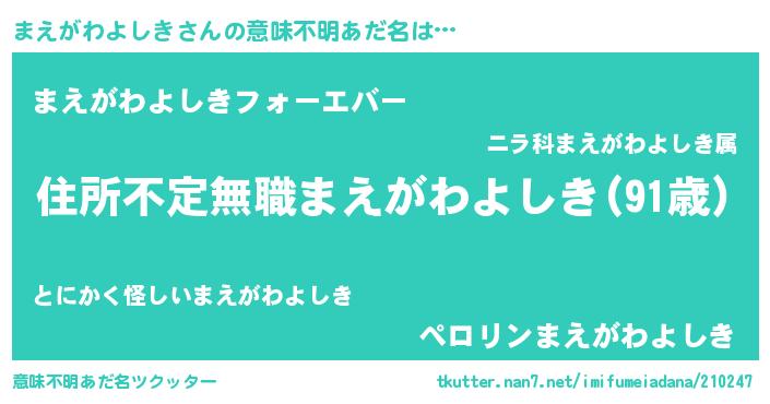 | 料理風あだ名 | 『まえがわよしきのカルパッチョ風』 |