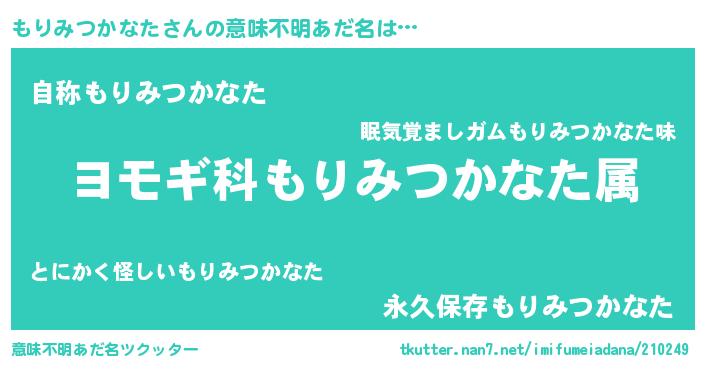 | ヘコむあだ名 | 『もりみつかなた(苦笑)』『もりっ子』 |