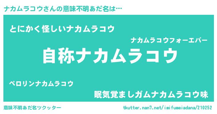 | 男性向けラノベタイトル風あだ名 | 『魔法科高校のナカムラコウ』 |