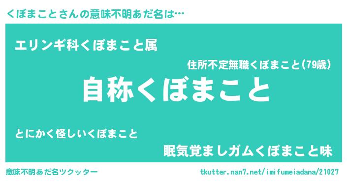 | 胡散臭い通販商品みたいなあだ名 | 『ガンによく効く高麗人参…その名も「くぼまこと」』 |