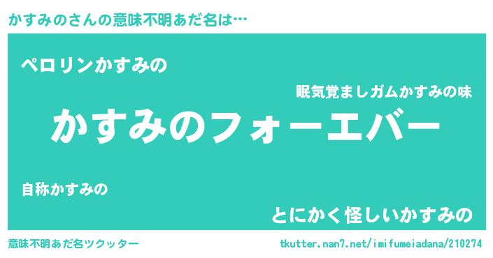 | ヒーロー風カッコイイあだ名 | 『ウルトラかすみのマン』『幻影騎士カス』 |