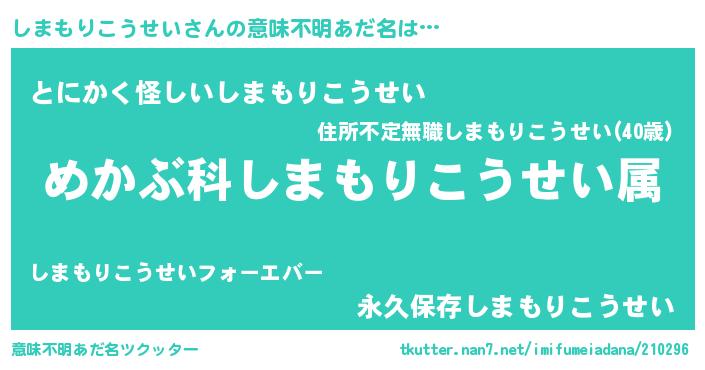 | ポケモン風あだ名 | 『シマキング』『ヒシマモリコウセイ』 |