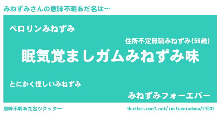 | ポケモン風あだ名 | 『ミックウザ』『ミネチュウ』 |
