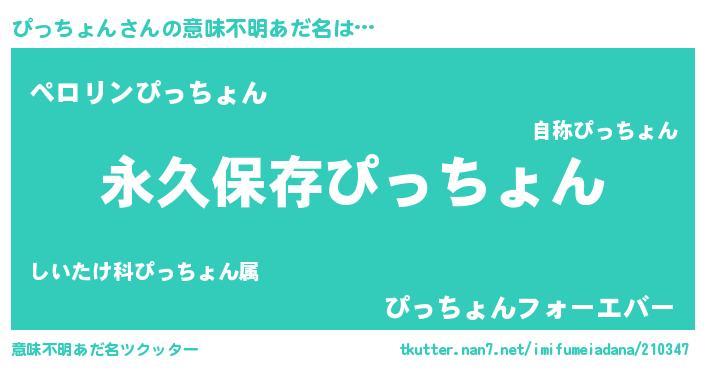 | 女子向けラノベタイトル風あだ名 | 『異世界で失敗しない100のぴっちょん』 |