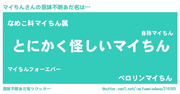 | 男性向けラノベタイトル風あだ名 | 『ダンジョンにマイちんを求めるのは間違っているだろうか』 |