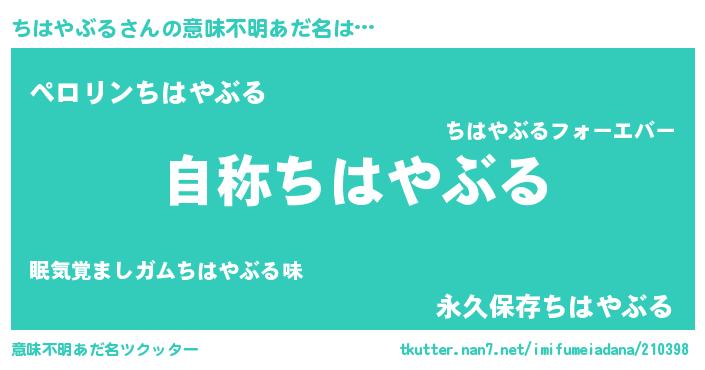 | 恥ずかしいあだ名 | 『チハヤブルデラックス』『ちはちん』 |