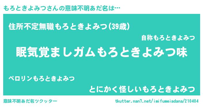 | 胡散臭い通販商品みたいなあだ名 | 『100人中100人が認めたマグネット磁石…その名も「もろときよみつ」』 |