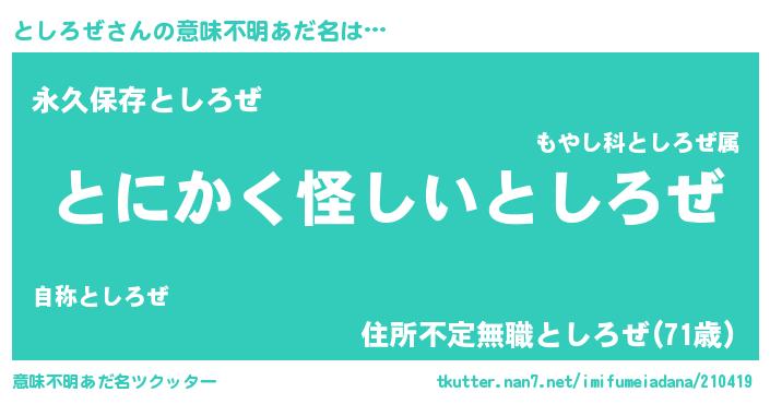 | 女子向けラノベタイトル風あだ名 | 『としろぜ様がみてる』 |